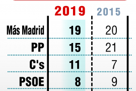 Las elecciones municipales del próximo domingo 26 de mayo serán la prueba del algodón de en todos ellos el partido más votado fue ahora madrid y el psoe quedó en segunda posición en varios elecciones madrid. 2019 madrid city council election (en);